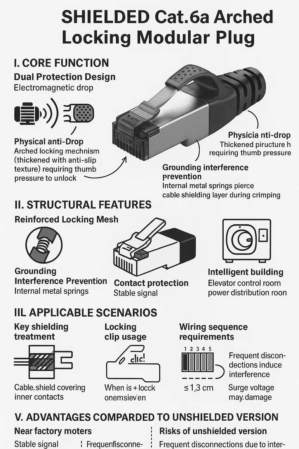 | Cás | Sciath Cat.6a Arch Latch Plug | Rioscaí Breiseán Neamhshielded |